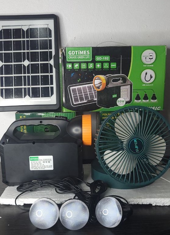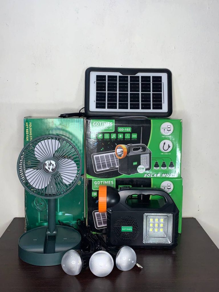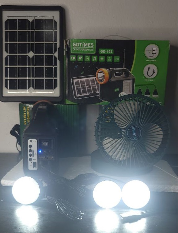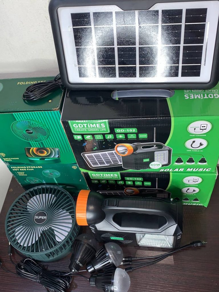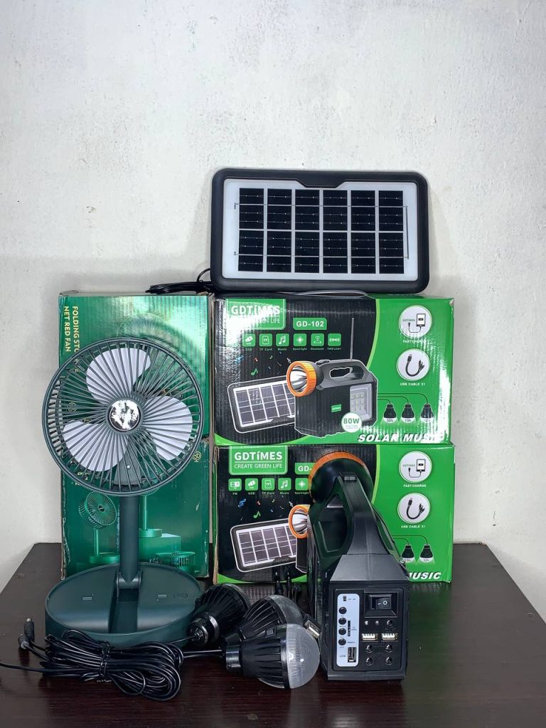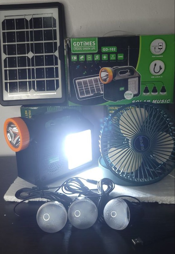 This product has 2 super bright 80W LED lights and comes with 3 extra detachable 20W LED bulbs. The battery is a powerful long-lasting lithium battery that gives over 24 hours of bright light. Order now, and you'll also get this amazing innovation fan for free worth ₦15,000.